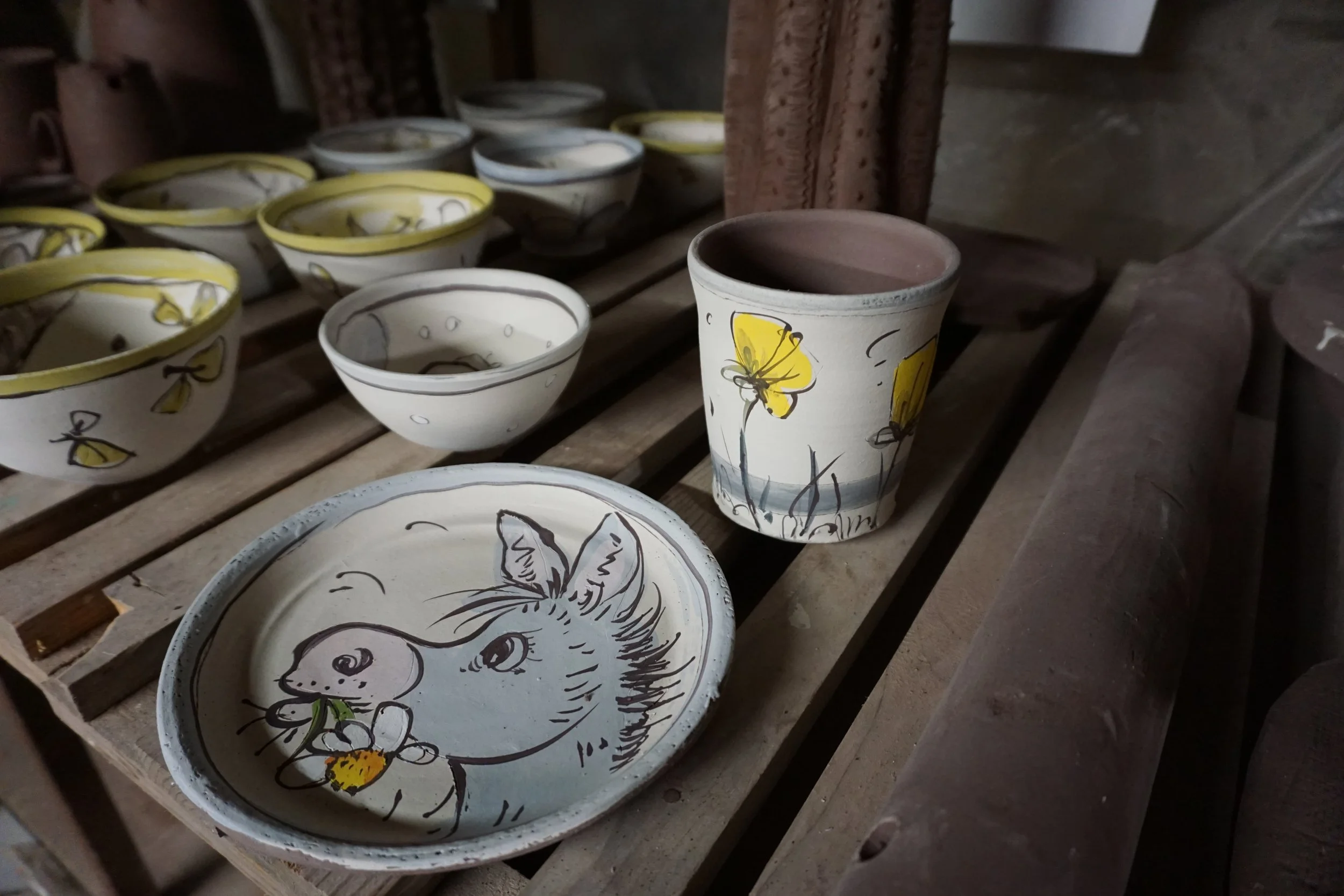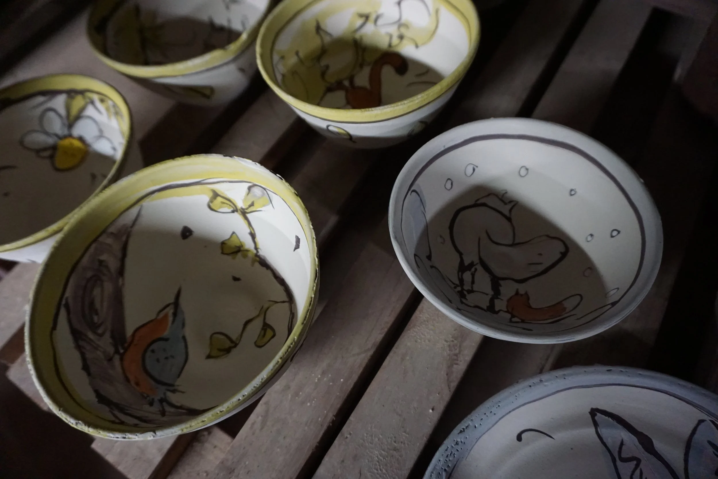 … les dessins ouvrent des pistes, puis on test les différentes couleurs, l’épaisseur d’émail, la cuisson…